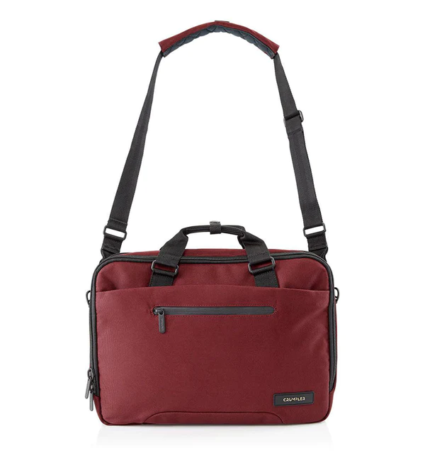 4 separate compartments, including 2 small scale front pockets, Padded 13′ laptop-sleeve