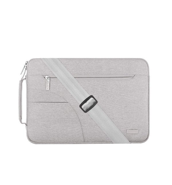 4 separate compartments, including 2 small scale front pockets, Padded 13′ laptop-sleeve