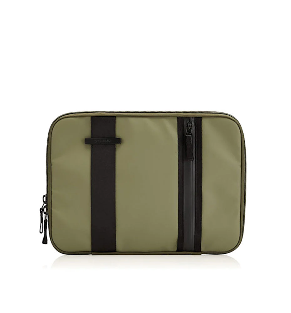 4 separate compartments, including 2 small scale front pockets, Padded 13′ laptop-sleeve